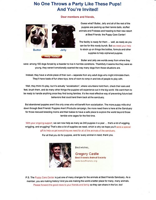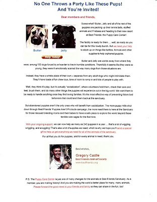 REMEMBER THE 61st Street Kennel Action Day ? A lot of great people helped in getting dogs out of a bad situation. Then there was our Super Adoption Saturday! So many of our 61st Street sweethearts got adopted. And the good news keeps rolling in! Here are two of the pups who are now living in Best Friends NEW PUPPY CENTER. Butter & Jelly are now living the great life!
