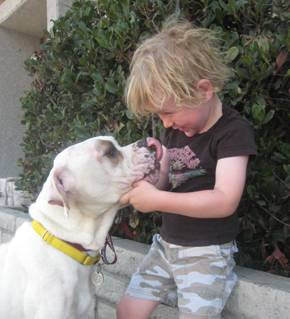 Today my young son, Wyatt, and I went to visit Angel and talk to the doctors about her condition. We got to the animal clinic and asked to see Angel. They asked if I had met her yet. I said “No”, but I had seen her pictures. T hey warned me to be prepared, then they brought her out to me and upon the sight of her, I broke into tears. You think you have seen it all in the rescue world, but this was the worst case of emaciation I had ever witnessed. I sobbed and tears came down the cheeks of others in the doctor’s waiting room. But Angel bounced out full of wiggles and her tail was wagging. Wyatt rushed over to her and gave her a big hug and a kiss. It was love; his embrace with Angel was pure gratitude and joy for life and I could not just stand there and foolishly cry. So on my knees I went, and Angel was in my lap, loving us like we were her long lost family. She truly has a forgiving soul and a heart of gratitude….just happy to be alive…and happy to show you just how much!