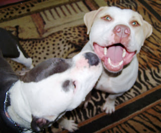 Petey never ceases to amaze me: Recently our pack acquired a dog whose throat had been slashed and his barking mechanisms had breen removed. According to this new shelter dog’s personality, he had never been up close and personal with another dog. The new dog panicked with anxiety when he saw the dogs, and he went into a frenzy, circling in the vehicle, almost going into a panic attack. Later, once the new dog was inside the home and crated, Petey was the first to greet him and sniff his nose through the crate. I watched while the new dog calmed down and they started kissing each other. Petey has a loving, caring energy about him which makes others feel safe.