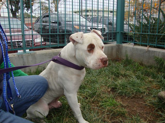 Rhoda (A1171241, 2 years old and a stocky 60 pounds) is as sweet as they come. Those soft brown eyes beg for your attention. She was a happy girl, no cares in the world — until she strayed into the prep school. This girl who wants only to learn and love now she has some serious cares — being at the shelter and picking up a nasty case of URI. Rhoda needs out right away!!! She is on her second antibiotic and has been moved to ISO. Along with her scholarly studies, Rhoda has a great fondness for other dogs — she goes so far as to steal kisses in the hallway. Please help this pupil get her diploma — call the South L.A. shelter at (213) 485-0117 or -0119 to save her. And KINDLY LET US KNOW if you do save her — as many people ask about the fate of these dogs. With thanks, Andrea & Mindy ivegonetothedogs@gmail.com (323) 363-4909
