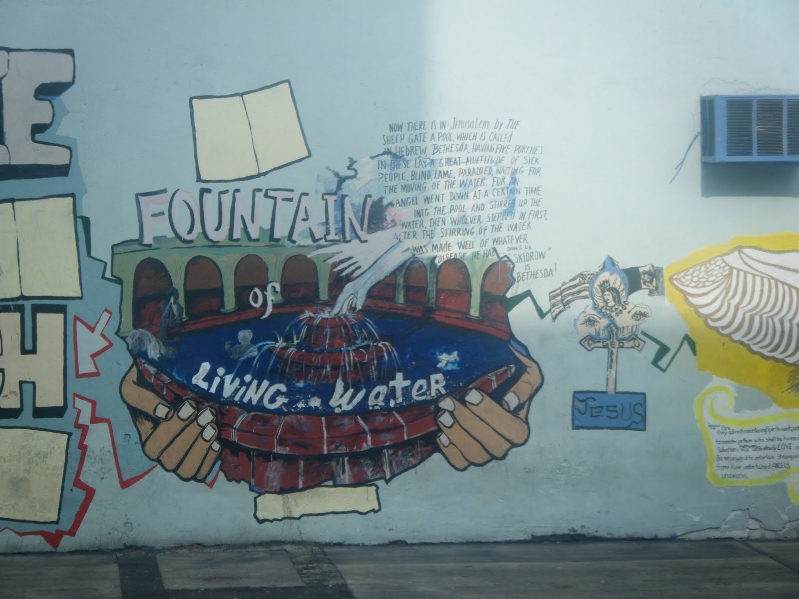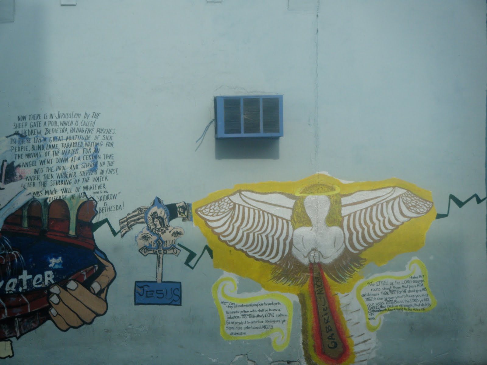 The Skidrow Community Mural created in 2008, which took hundreds of hours, or eight artist and hundreds of community residents, friends and supporters was destory in a few hours by a ” new church”!