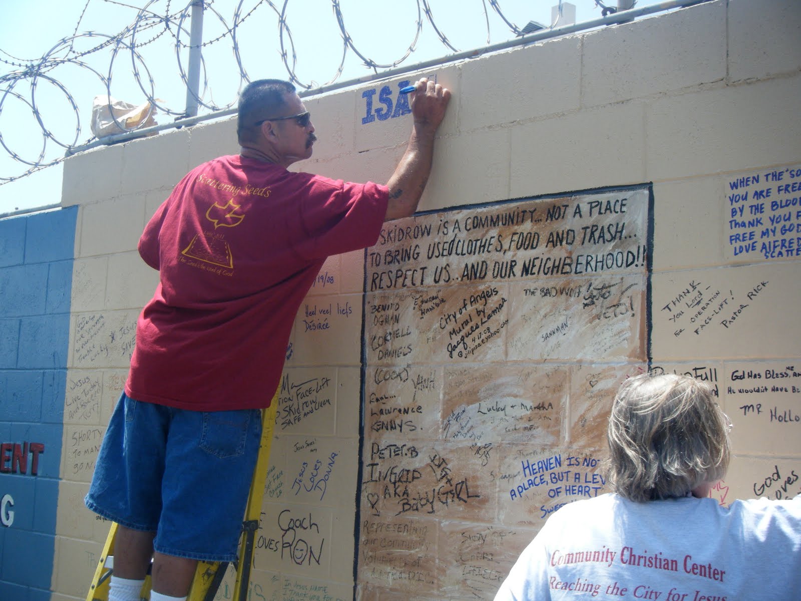 People came from all over Los Angeles County and as far as London, England to see this community mural. In the interview with this pastor, he acknowledged that he ” read the wall”…but it is not what he wants the community to know. He has a new vision for Skid Row.