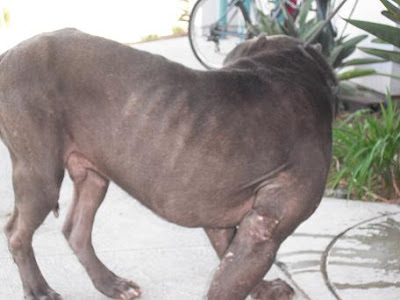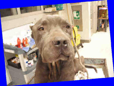 Blue came to the shelter as a stray. He was in pretty bad shape when he arrived, emaciated and could barely stand.