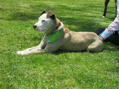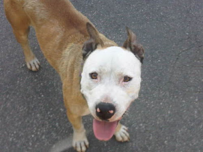 Please cross post this older female English Bull dog -Staff TerrierX. She was one of 21 dogs that came into to LA Animal Services as Evidence Dogs. When she was taken by the animal cruelty task force, she was badly injured, her body covered in bite wounds, presumably from being attacked by the other dogs. The owner signed her and the rest of the dogs in this pending case over to the Dept of Animal Services. Now they are all up for adoption. The other 20 dogs are being held at North East shelter. I met this dog on several occasions (before the owner was arrested) and she is social with people and other dogs.