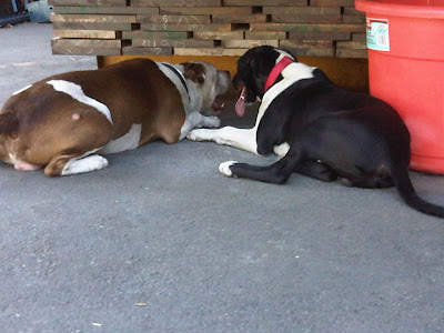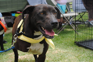 According to the volunteers, Damien was wonderful, very social with all the people who came by to visit with our dogs and all the dogs in our booth and walking with perspective adopters. No applications, again for Damien but what a great day he had on Sunday. When Jennifer brought him back to the kennel, late Sunday evening, Damien crashed out, laying in his crate, on his back, so tired. He ate dinner than happily went into his run for the night.