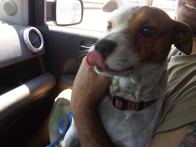 On Friday, I met Alex at his spot and we drove over to the North Central Animal Shelter to get his third dog, “Fire” out of the shelter. Both Sunshine and Magic are doing very well since leaving the shelter last week and being spayed/neutered. They really missed Fire. Unfortunately, Fire bit an ACT while in the shelter so she had to be quarantined. She is a fearful little Pit bull -Chihuahua mix. She only loves her Daddy Alex although she is now OK with me since she seems to understand, I was there to help her. I took this photo of her just before we started our drive back to the spot where Alex lives with his dogs. All of the dogs were strays, starving, in very poor condition when he rescued them off the street. These are not the first set of dogs that he has rescued and it won’t be the last. Alex is a dog lover, a very kind person, who can’t see an animal suffer. Since he has been part of our DDR family since 2007, he has helped many dogs live a better life, including our Rex, a dog that he rescued but turned over to us because he knew we could find him a “better home”.