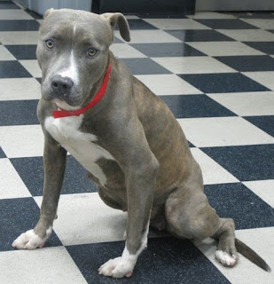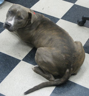 I won’t forget the first time she stood up when I approached her cage. Won’t forget that first lick of the fingers, the first time I saw her wag her tail. Knowing that Eclipse has this little germ of hope is so encouraging. Everyone admits that she is stunning. She has been kenneled with many other dogs and gotten along fine. Eclipse needs someone now to shower her with love and to elicit that playfulness hidden behind her blue brindle coat. But, it will take time — she needs patience.