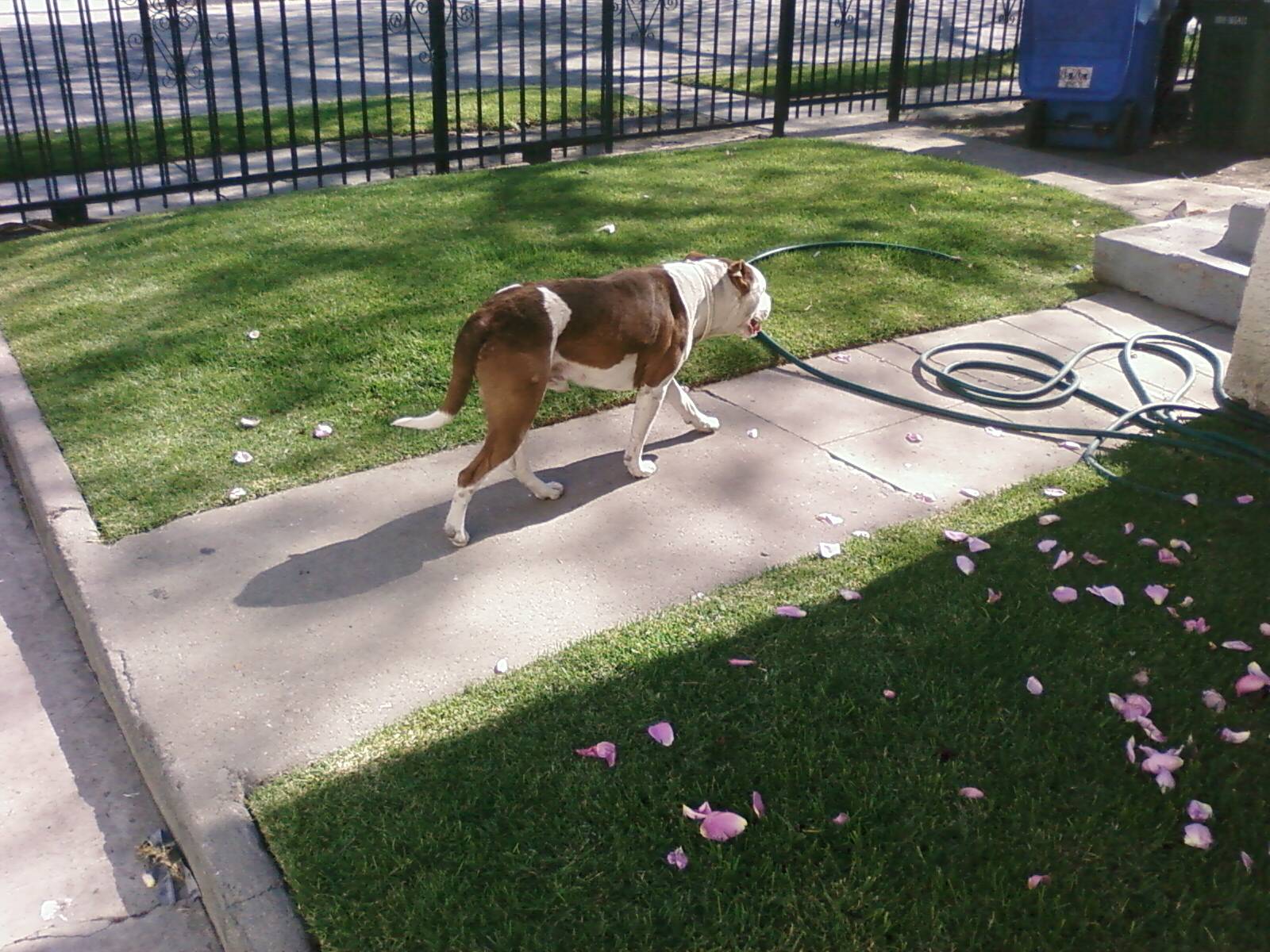 My boyfriend, Manny and I were having a great time outside with our pitbulls when a dog approached my yard. My neighbors about 2 houses down would always let their dog roam the streets. Their dog would always bark at my dog and I always told them to get their dog, but they always refused.