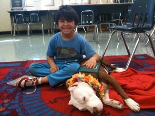 With the reading dogs, we have seen some kids improve up to two reading levels over eight weeks; we have shy, withdrawn kids come out of their shells, and we have seen kids catch up in all of their studies because they can now read their other lessons.