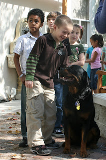 BARK dogs are big and small, from Chihuahuas and Frenchies to Pit Bulls, Rotties, a Newfy, and a Leonberger. The dogs are all a credit to their particular breed. Many of our kids are in low-income neighborhoods and all they know are dogs who charge fences, bite, and snarl. Rowdy, a pit bull handled by Linda Bates, was recently retired after 14 years of therapy service!