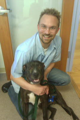 ASKIM (NOW GUS!)? – to My DIEMER/EPPLEY family!!! YAY!!!! Thank you, thank you, thank you. You saved me from a life of dog fighting and uncertainty! Here’s a pic of dada, Nate, when he took me to work! My Mum Kristen’s not on there but I’ll remind them to send updated pictures with all three of us!!!!