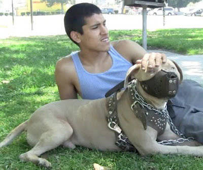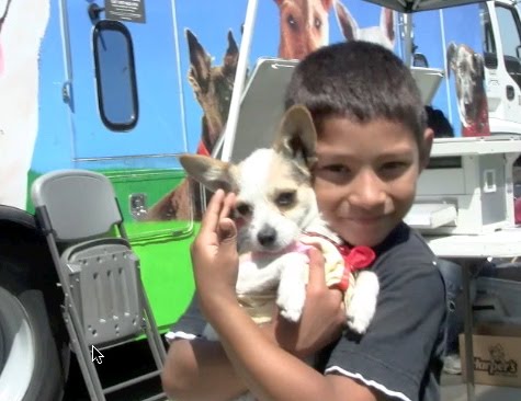 The park is full of children who do love dogs and do want to help animals, it just takes time and patience to get to know them and get to know the community of Compton that we serve. Because we are in the park on a regular basis with the “dog clinic”, as everyone now call the mobile spay/neuter clinics, we were able to convince this young man, owner of a beautiful pit bull, wearing a leather muzzle and harness, not because he is aggressive with people, because people tease his dog, trying to get him to bite them and other dogs, running loose in the neighborhood, trying to attack him whenever he walks his dog. This young man is doing everything he can to prevent his dog from making a mistake, becoming another statistic. When he arrived with a heavy chain for a leash, looking the way he does in the photo, some of the volunteers thought he must be a dog fighter but I knew, this is someone who is doing what he can to protect his dog including getting his dog neutered. He sat all morning, waiting for our second intake. He had walked three miles to the clinic without an appointment, hoping that we could work him in and we did!