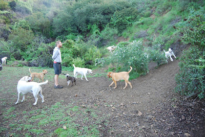 I got to know Gabriel through a friend, and he told me about the pack hikes he does twice a week working as a dog walker. After chatting for a while, I asked him to bring Sass along on the hikes, since Sass had developed a fear of big dogs from being attacked.
