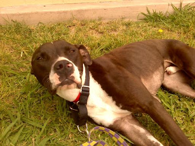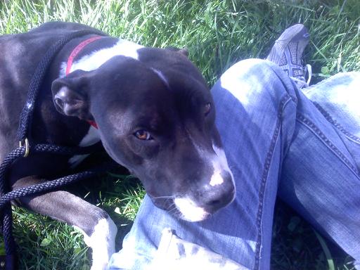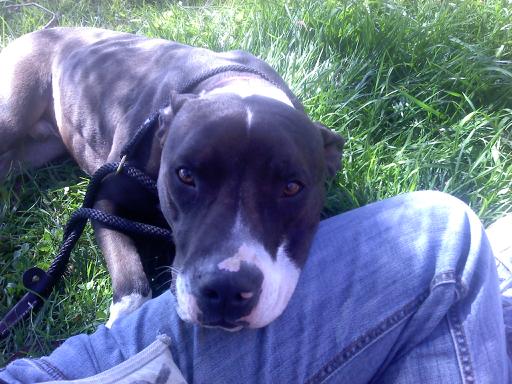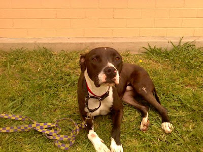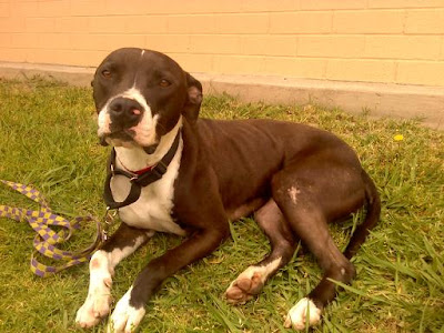His name is Bruce. He is a black and white 2 year-old neutered male who was a “owner surrender.” He has been at the shelter since 2/10/10. He is the sweetest dog you will ever come across. He is still very shy, but has never shown any aggressive behavior. Give him food and love and he will lie in your lap all day. He is content to simply be near you. As he is a “Velcro” dog, he is fantastic on the leash, needing very few reminders. He also knows sit, down, and stay. He has never shown any aggression towards other dogs so far. He was underweight when he came in and lost even more weight in the shelter, but has recently gained a little back. I know this is probably just like any other story you’ve heard and there are tons of pitbulls out there that need homes. I just had to at least try to do something for him. I would really hate to see him put down as two of the other dogs I was working with were put down last week. He has been at the shelter going on two months now. There is probably still some time left for him, but I don’t know how much more.