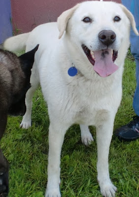 And so they do. When Kristen and I walked them last weekend, their bodies were touching nearly the entire time!!!! These two dogs are truly bonded and the best of pals. When Floyd (A1106889, 4 year old lab mix) was heading back into their kennel first —