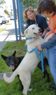 Fitz (A1106888, 7 year old, GS mix) cried. He is the protector of his big white, fluffy friend. And Floyd is the kisser of his big smoky-colored, soft-furred friend.