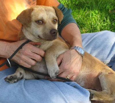 Baguette (A1107427, 2 years old, on alert since April 17th, for a case of demodex that is nearly gone) is a little sweetheart. When given a cat test yesterday, he shook in fear — and crawled right back into the ACT’s lap. Here’s a video (paste link into your browser, might have to click a couple of times to get it) of this bow-legged sweetheart, cuddling and prancing. No need to say more — just watch and he will surely capture your heart.