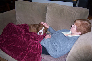 And dad loved the comfort and companionship she brought him; I often heard him just whispering to Emma, telling her what a good dog she was and thanking her for being there. Emma would hop into bed and snuggle up against my dad when he took naps, they were quite a pair.