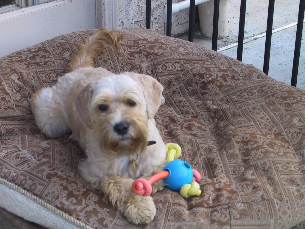 I have a real Wheaten Terrier clip on him now, and one of the Mom’s at our horse show said she is a Wheaten Breeder and that he is definitely a full Wheaten. Who knows? We did a DNA test that said Cocker, Mini Pin, & Maltese. No way! I’ll accept the part cocker, but not the other breeds. They say if you laugh out loud every day you will live a long time. Well, Milt & I are going to live forever! We laugh at Bojangles every day! He is just too cute, too funny, too loving, too joyous, etc, etc, etc! He does everything at full speed with total joy. He is the official greeter at our horse shows, and his job is to greet EVERY person and dog that comes on the place! The sleeping picture is what he is like on Monday mornings after a weekend of horse shows at Camelot Riding Club. When he starts snoring, we laugh at that too.